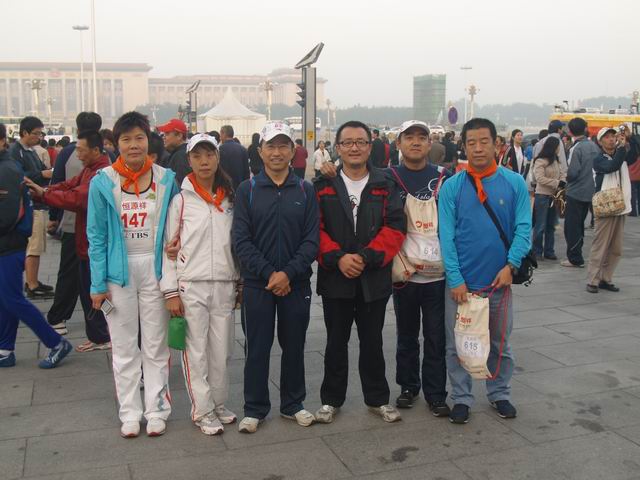 今天早,天晴温度16度左右,不冷不热.感觉好舒服,好象忘记昨天刚熬过23小时的硬坐才深圳到北京一样.我看了身边其他的跑友大部份都是穿多威马拉松鞋的,俺也穿这品牌的马拉松鞋.这次北马我也不是第一次参加国际马拉松比赛的,心理也是很定不紧张.8:15分,当听到枪声一响好几万人的队伍,缓慢的一个跟一个的跑着.几分钟就到了天安门广场城楼前,在毛主席像前通过.到了5KM处感到身体进入了佳竟.腿好象在呼唤我可以再加点速度.俺也提了点速度.到了10KM55分钟,娃!好象俺练习都没跑这快啊.到了20KM1小时50分钟感觉还好,保持速度前进.到了半程发觉身边还好多人在跑,北马还是高水平的比赛啊,到30KM2小时50分钟开始感到体力下降,腿也有点酸了.速度也放慢了点.36KM时间是3小时20分钟,感到难受,小腿感到再跑下去就抽筋,我停下了跑了改徒步了.走了500米又跑起来,不久也停下跑变徒步,就这样徒步+小跑完成最后艰难的6KM,冲刺了,成绩打印4小时10分36秒,我很兴奋,记的一年前的厦马我是5小时18分多完成,KAO 快了1小时8分,看来这一年的苦练还是没白费,好感谢山友跑版群大家的鼓励,支持!!!!希望大家给点宝贵的意见,大家互相学习提高水平.