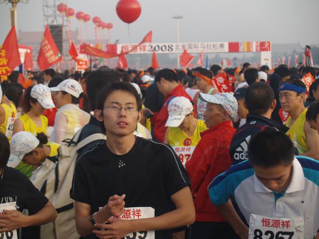 今天对于我来说太精采,首先这是我第一次来北京,又是来参加北京马拉松这么大型的活动,同时今天2008年10月19日也是我的生日,你说我能不激动,不兴奋,这一切真的一语难尽。今天早上8点15分只听一声枪响北马比赛开始啦!在拥挤的人潮中,我已开始慢慢跑了起来。大约过了20分钟左右,人潮开始渐渐分散开,我就逐步加快自己的速度,当跑到10公里时我看了一下时间是40分,我又继续往前跑,在18公里左右,我的右膝关节开始感觉不行了,于是我放慢了速度,小休了一会儿,我就加速跑,在加速不到10分钟,我的右膝又痛了,就这样跑一会,慢走一会,我始终坚持着挺到了27公里,但这时不但膝关节痛就连小腿肚,大腿肚......总之现在是全身感觉酸痛.无力,脚步慢慢而又艰难地向着前方走去,又过了一公里,我实在太难受了,我停下了脚步,眼睁睁地看着一个又一个的选手,与我擦肩而过,看着前面的人我焦急万分,眼泪已忍不注夺眶而出,为何脚要在这时痛呢? 我抬头看着天空,真想大叫,天啊...为啥要这样...。加油,加油的声音在我耳边回响,这时从我身边跑过的外国人.老人.已有比我小的,他们告诉我,不能停,加油,加油。我被这一切感动了。我试着跑了起来,这时我突然想起今天是我的生日,我兴奋起来,就这样我1公里又1公里的朝着终点跑去,30公里,31公里,32 公里,35公里,37公里,40公里,41公里....已许是激动,兴奋,快到终点时我还超越了好几个人,我跑过终点时,是4小时43分18秒真是既意外又惊喜。对于我来说这个成绩,可算是一个送给我生日的最好的礼物啦!我今年的生日太特别了我将永生难忘。