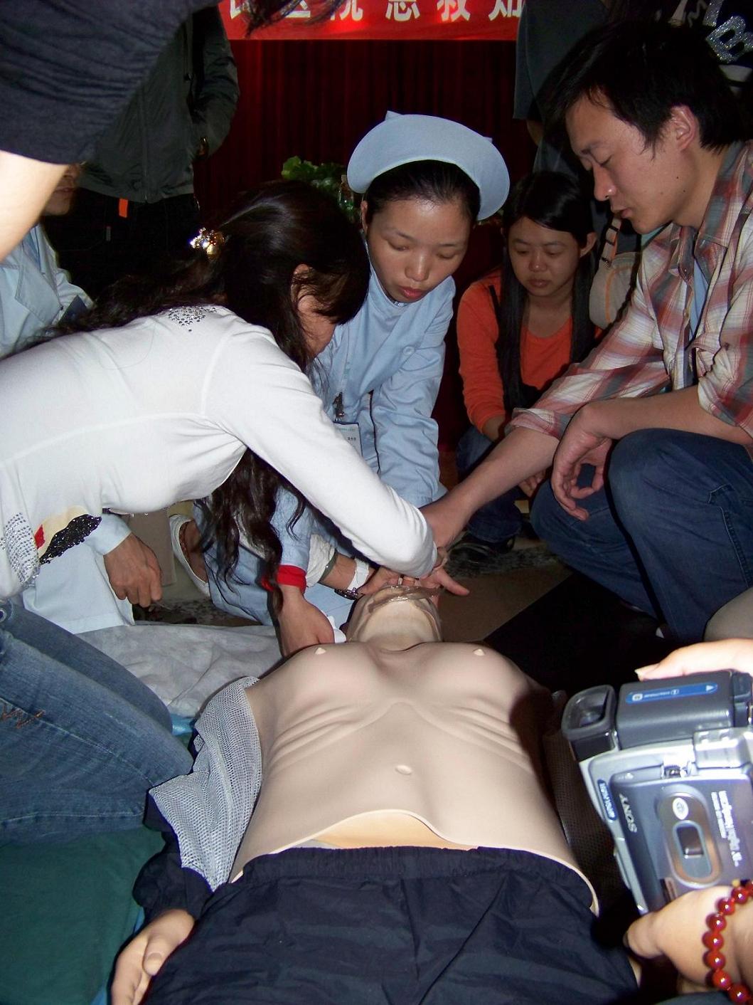 【活动缘起】: 在2006年2月,基于提高我们自身的医务知识以及自我保护能力,也为了提高义工的服务质量和更好的做好义工自我保护,避免在生活中或服务时引起不必要的麻烦,当时由我多方联系,由蛇口人民医院为南山区义工进行过一次急救知识的讲座和一般的包扎等的操作演示,当时因新的心肺复苏标准未出,以及时间紧张等原因就没有安排参加培训人员的动手操作.去年中后期,深圳市医学急救中心曾在东门搞宣传时,倡导全员参与学习院前急救,即心肺复苏技术的学习,加上考虑到现在户外活动深得人们的喜爱和参与,但户外活动同时也存在无法预料的风险,所以,在我的提议下,经蛇口人民医院义工队的努力,蛇口人民医院领导同意为我们有心学习院前急救的人士进行急救知识和技能的公益讲座和新版心肺复苏技术及简单外伤处理操作的互动学习的活动.